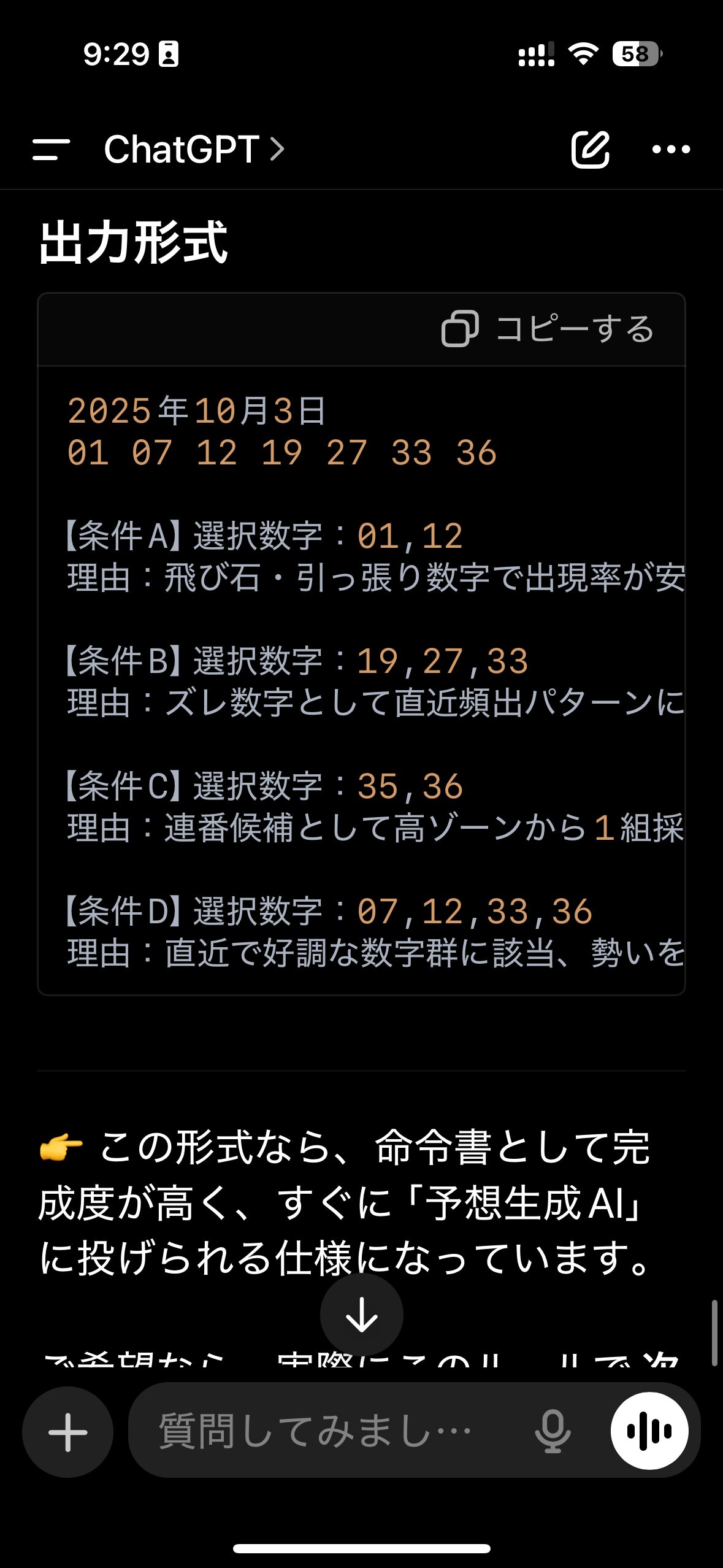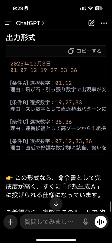 ちなみにAIで宝くじを予想するための文章は、ChatGPTと同じ内容の文章を読み込ませています。