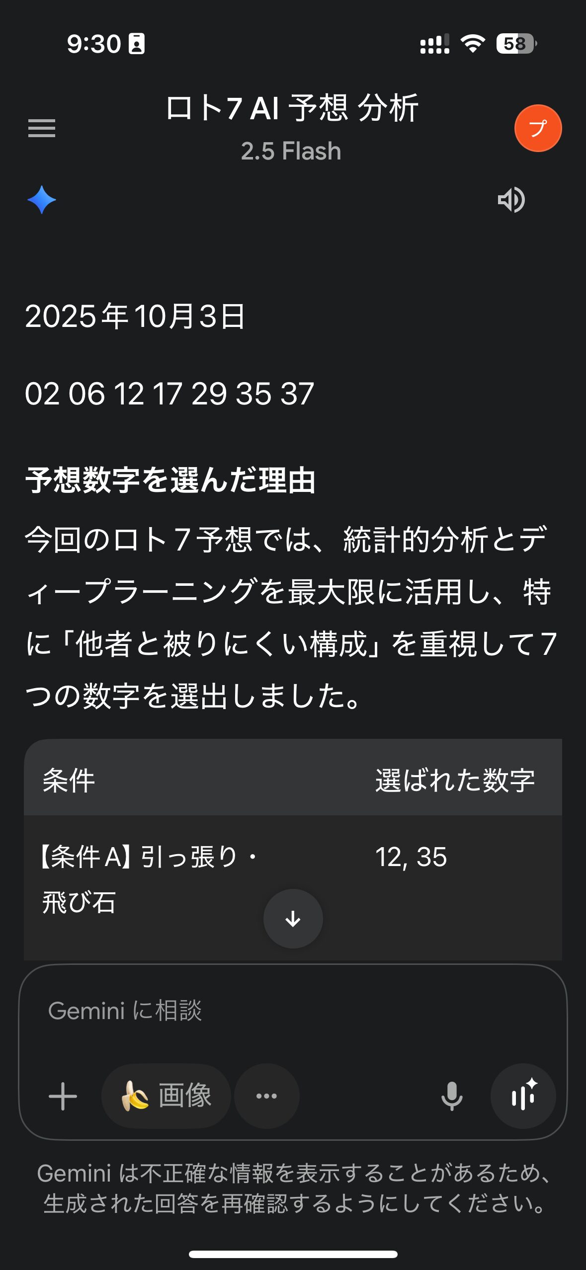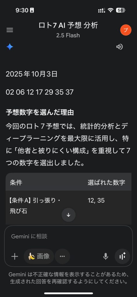 そしてGoogle社が提供する「GoogleGemini」でも、ロト7のAI予想をしています。