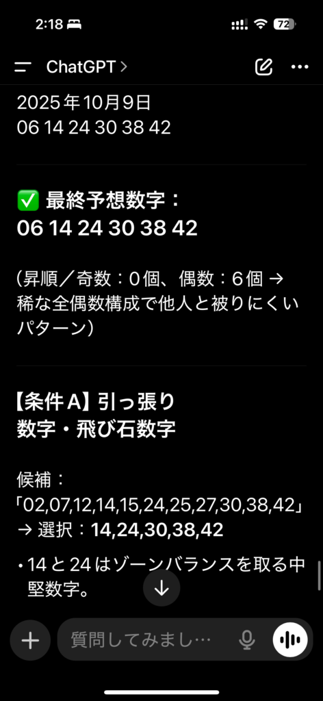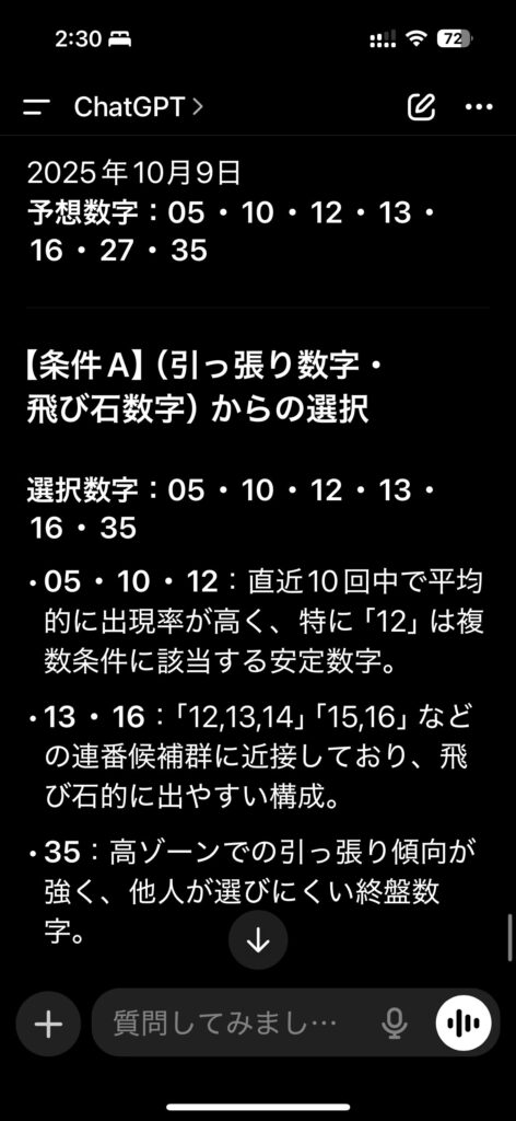 ちなみにAIで宝くじを予想するための文章は、ChatGPTと同じ内容の文章を読み込ませています。