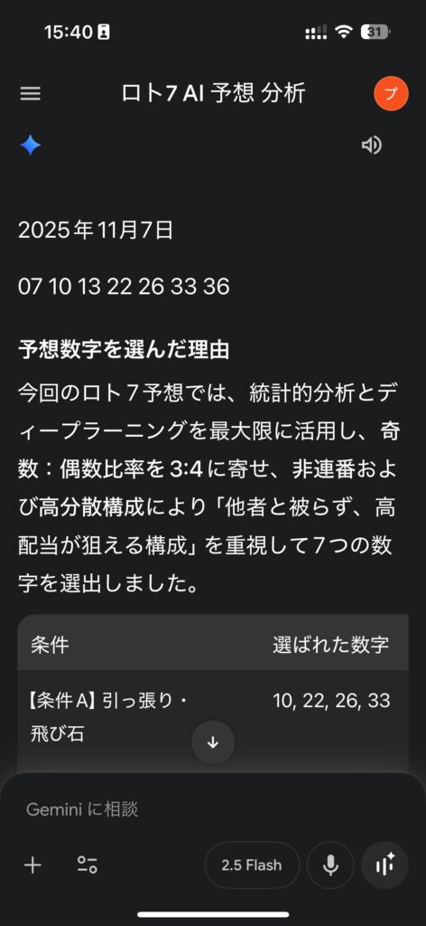 そしてGoogle社が提供する「GoogleGemini」でも、ロト7のAI予想をしています。