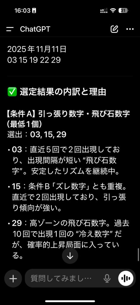 今回ChatGPTで予想したミニロトの結果はハズレでした。